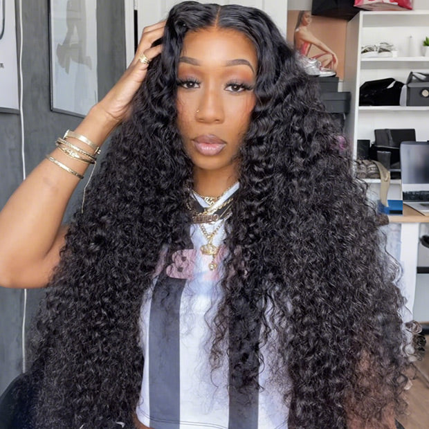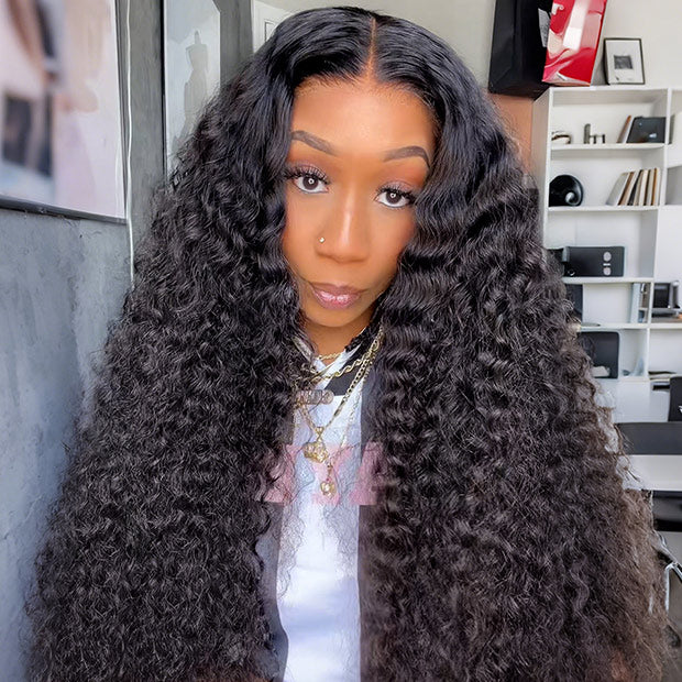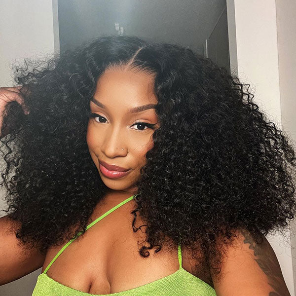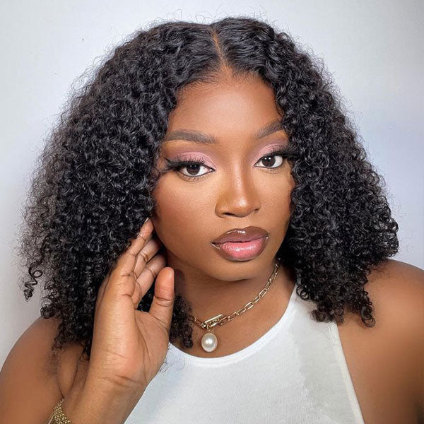 Vshow Yaki Wand Curly Wig Human Hair Wear Go Glueless Fluffy Wig 7x5 Pre-Cut Lace With Drawstring