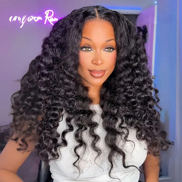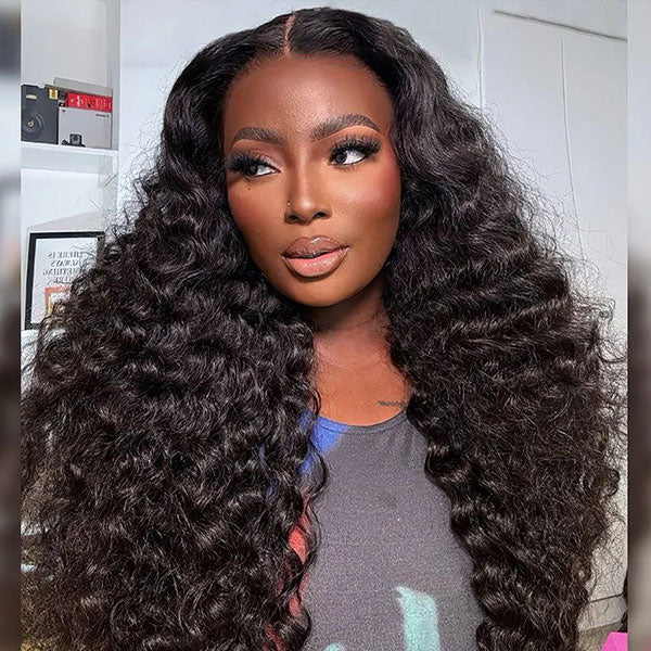 VSHOW Deep Wave Wigs 7x5 Pre Cut HD Lace 180% Density Thick Human Hair Wigs With Bleached Knots