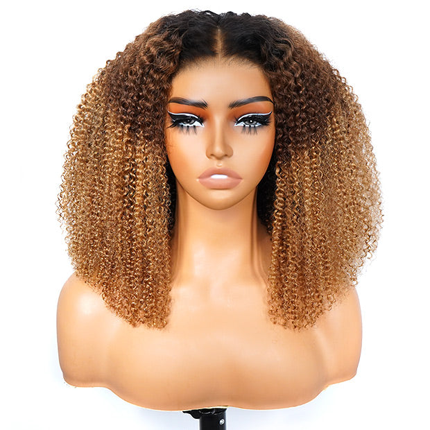 Vshow Ombre Color Kinky Curly Wear Go Wigs 7x5 HD Lace Wigs 1b/4/27 3 Tone Color Wigs