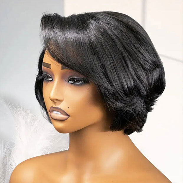 Glueless Wig With Elastic Belt|Cute layered bob wig With bangs Straight Brazilian Hair Wigs