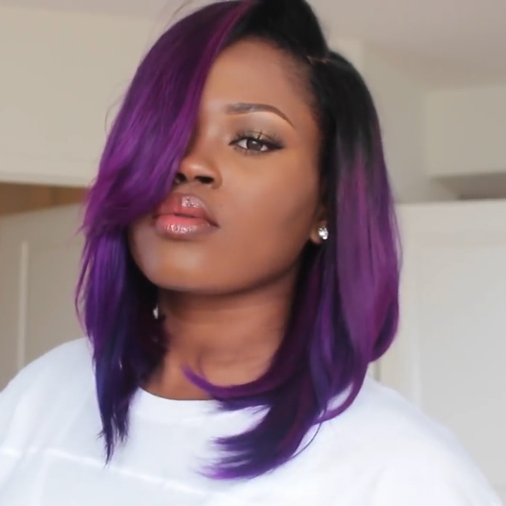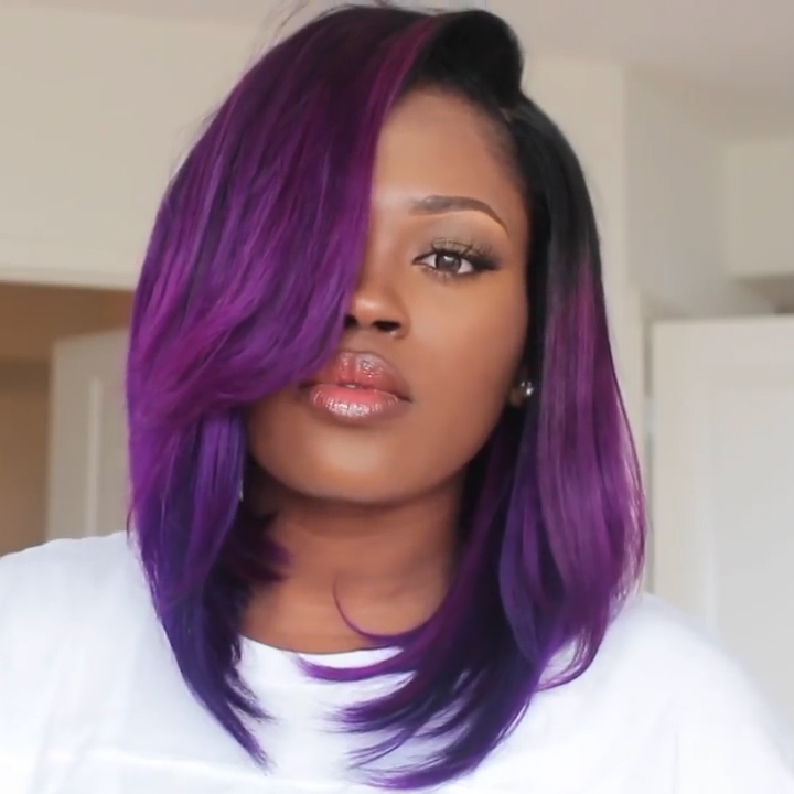 Glueless Wig With Elastic Belt| 🔥2024 Human Hair Shoulder Length Natural Straight Bob Violet Lace Wigs