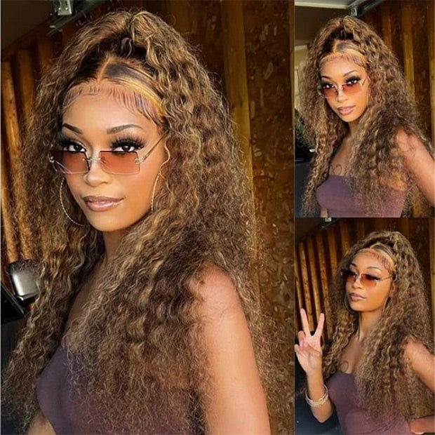 • Vshow Water Wave Ombre Highlight Water Wave Human Hair Wear Go Wigs 360 Lace Frontal Wigs With Bleached Knots