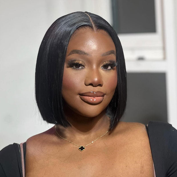 • Vshow Short Bob Straight Human Hair Wear Go Wigs With Bleached Knots Pre Cut 10x6 Lace Wigs For Women