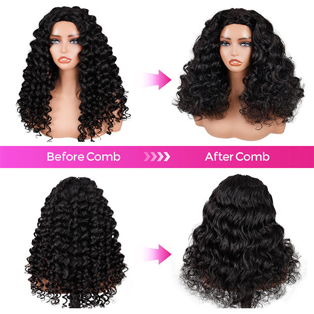 • Pre Wand Curls Kinky Straight Wigs 250% Density 3 In 1 Half Wigs For Beginners Flip Over Human Hair Wig