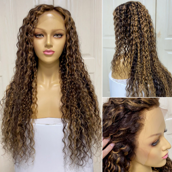 • Glueless Wig With Elastic Belt| Lace Front Human Hair Wigs Highlighted Deep Wave Wig With Baby Hair Pre-plucked