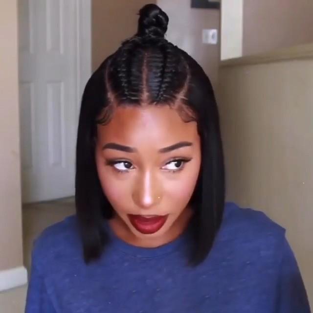 • Glueless Wig With Elastic Belt|🔥Brazilian Human Hair Straight Hair 4*4 Lace Closure Bob Wigs