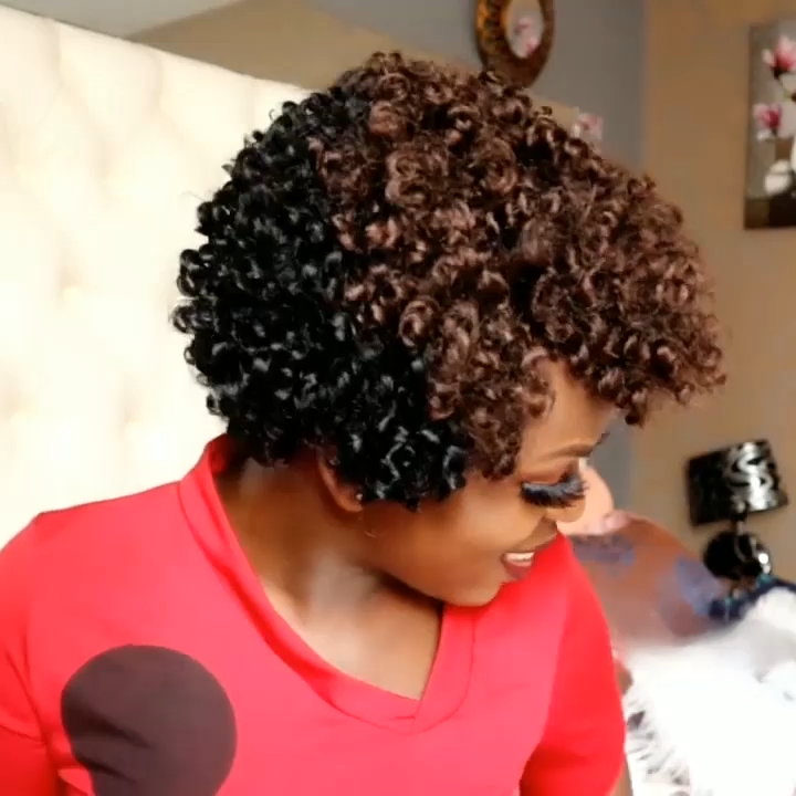 • 🔥Hot| Glueless Wig With Elastic Belt|🎉4*4 Lace Closure Short Kinky Curly Wigs Pre Plucked with Baby Hair