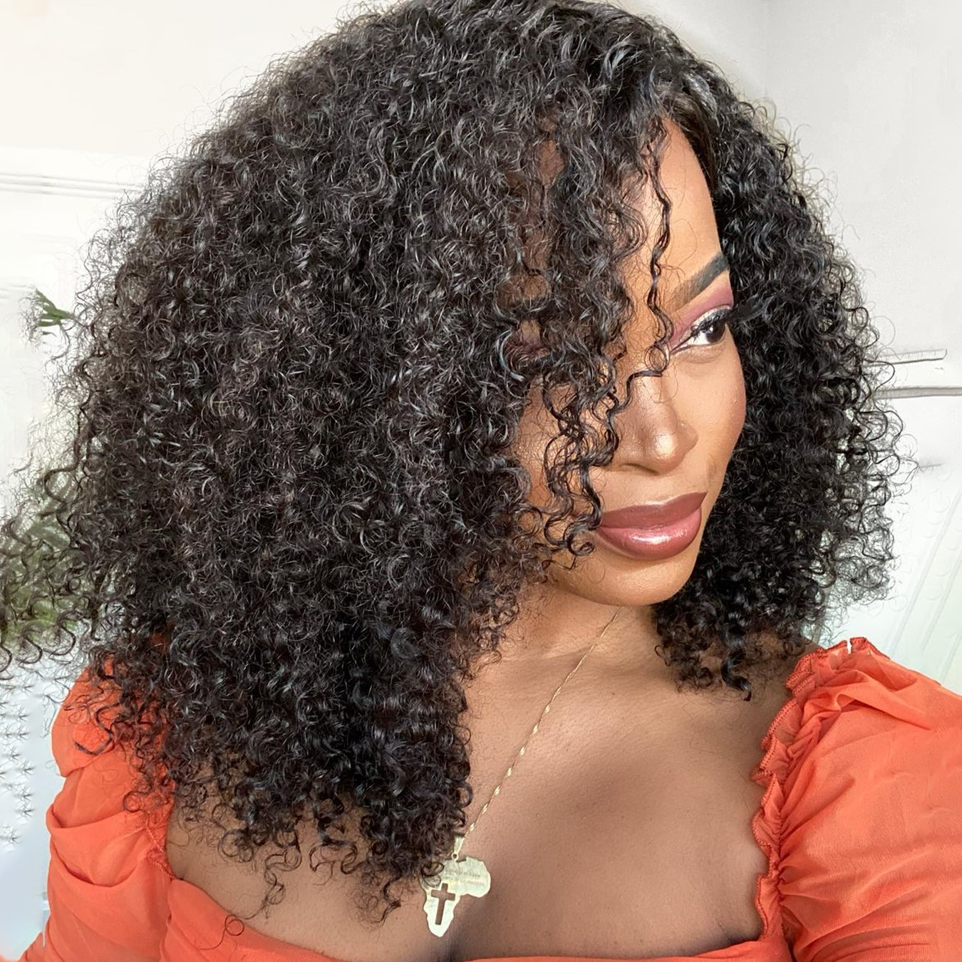 • Glueless Wig With Elastic Belt|🔥New Kinky Curly Lace Closure Wig Real Glueless Wigs Natural Headline
