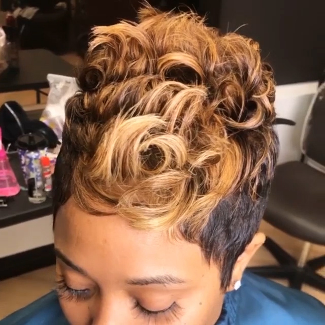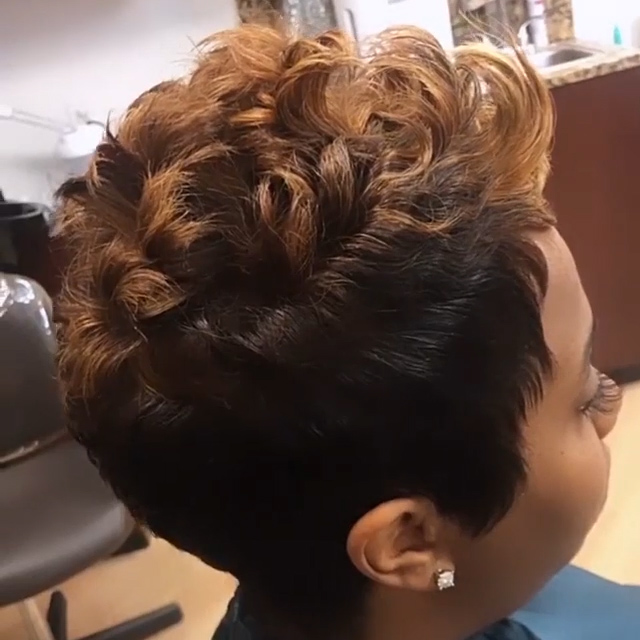 • 🔥Hot| New Glueless Wig Lace Frontal Pixie Cut Curly Blonde and Black Short Wig With Bangs