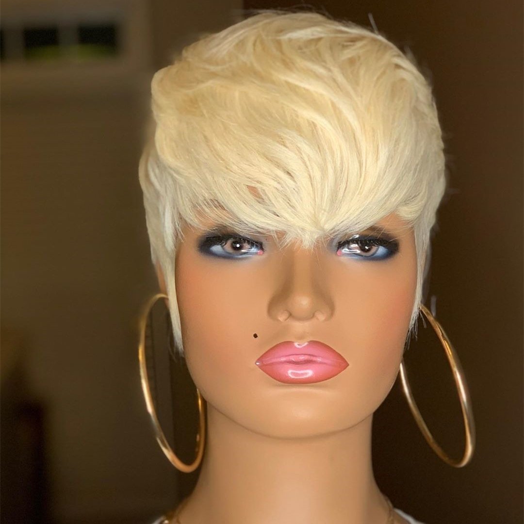 • Glueless Wig With Elastic Belt|🔥Lace Human Hair Wigs Pixie Cut Straight Bob Wig with Baby Hair