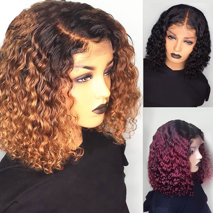 • 🔥Hot| Ombre Hd Transparent Lace Front Wig Bob Kinky Curly Wig Pre Plucked with Baby Hair