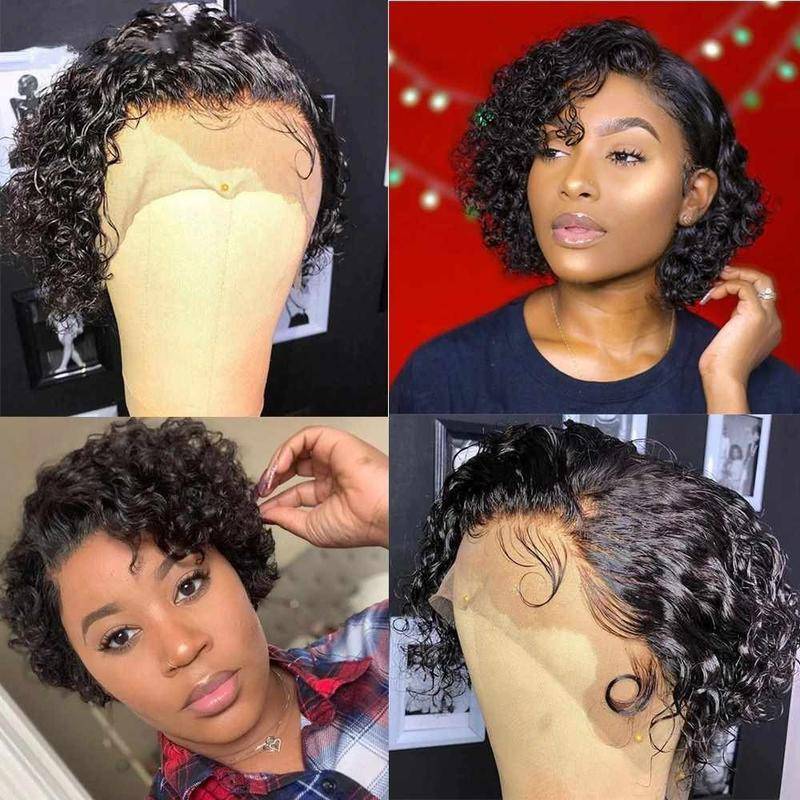 🔥Hot| Super Glueless Lace Frontal Short Afro Kinky Curly Human Hair Wigs Brazilian Virgin