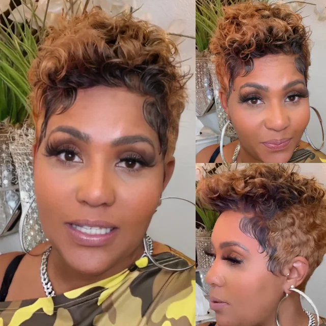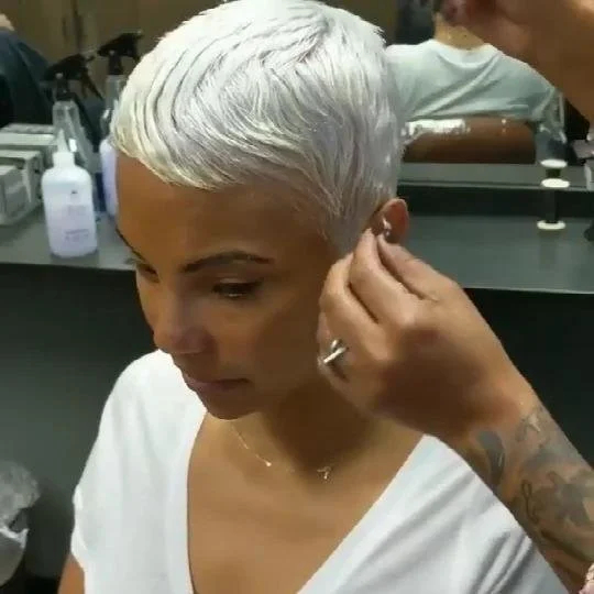 🔥Hot| New Fashion Style Older People Lace Closure Highlight Short Hair Pixie Cut Wigs