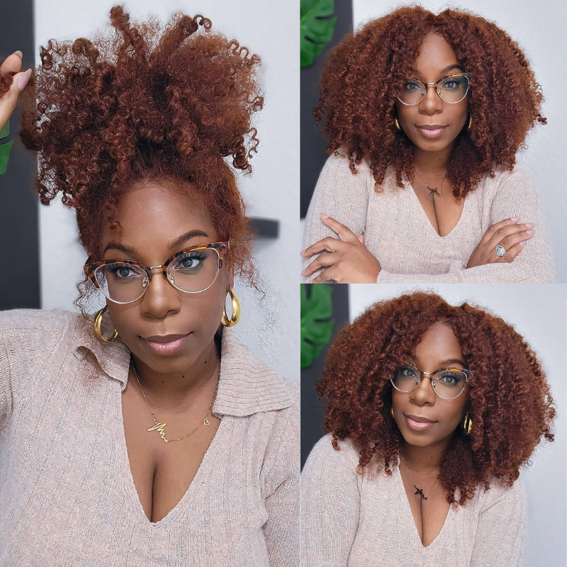 Auburn Brown Color 13x4 Glueless Lace Frontal Wig Kinky Curly Human Hair