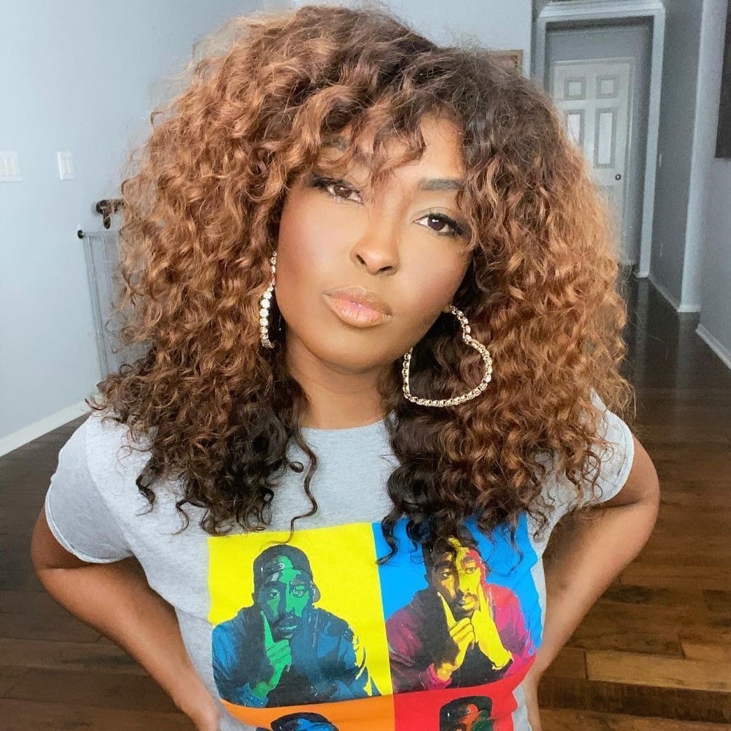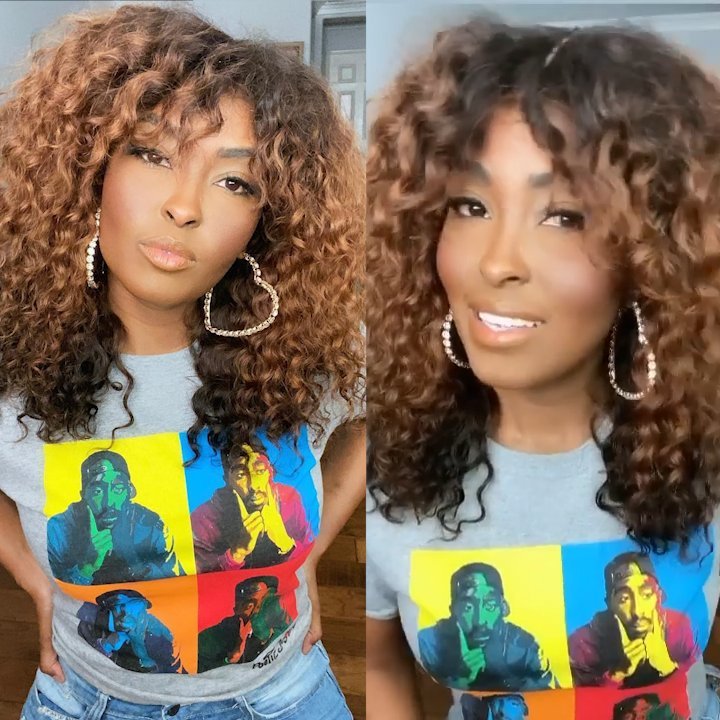 Glueless Wig With Elastic Belt|Ombre Black to Brown Curly Wig With Bangs