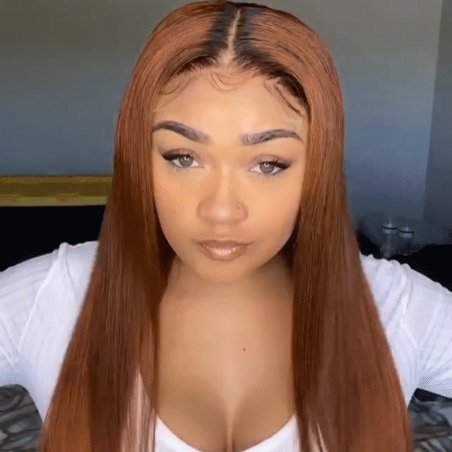 Straight Reddish Brown Lace Front Wig Human Hair Auburn Copper Color for Women