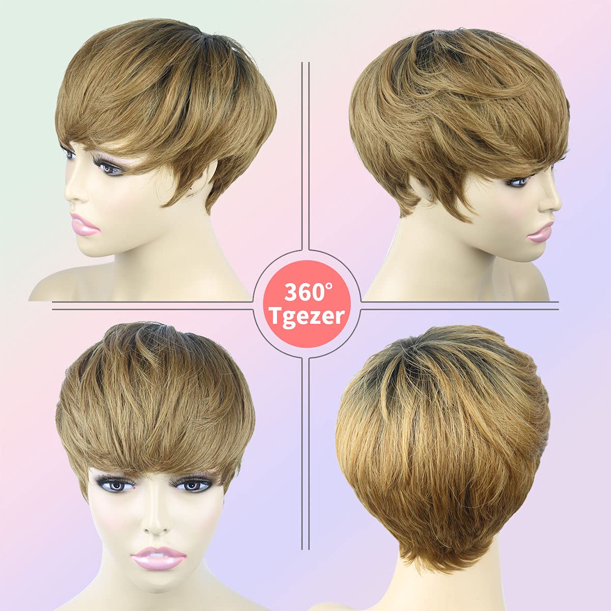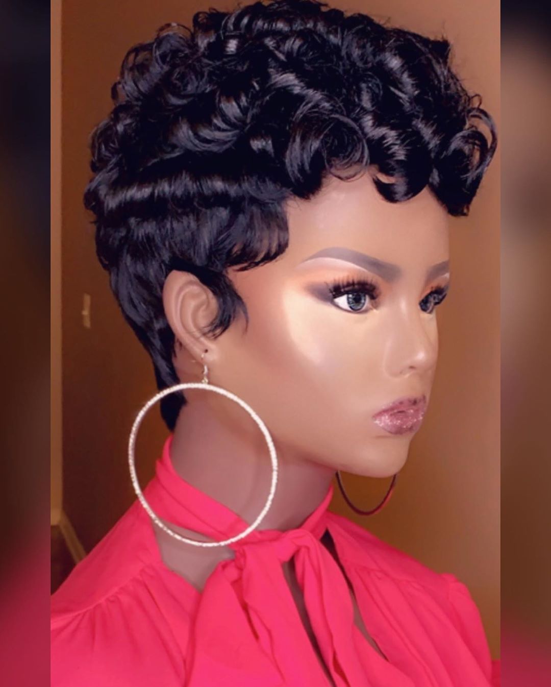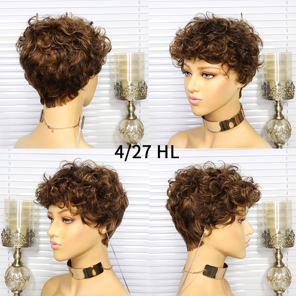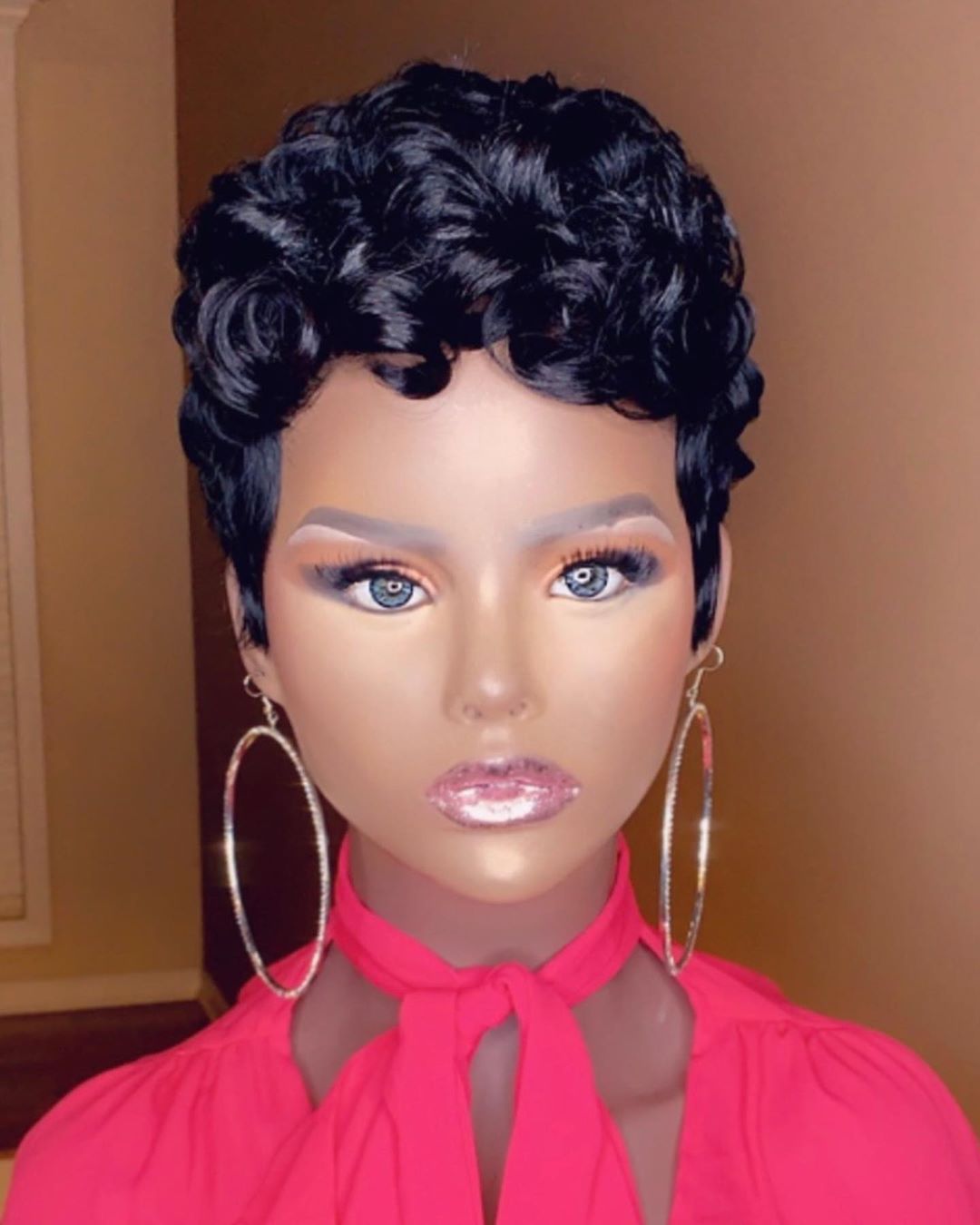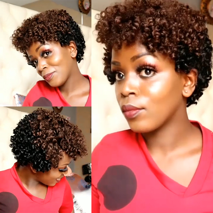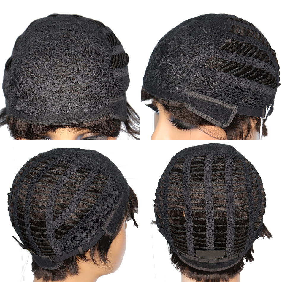 Glueless Wig With Elastic Belt|🔥Brazilian Remy Human Hair Wigs Short Curly Pixie Cut Bob Wigs