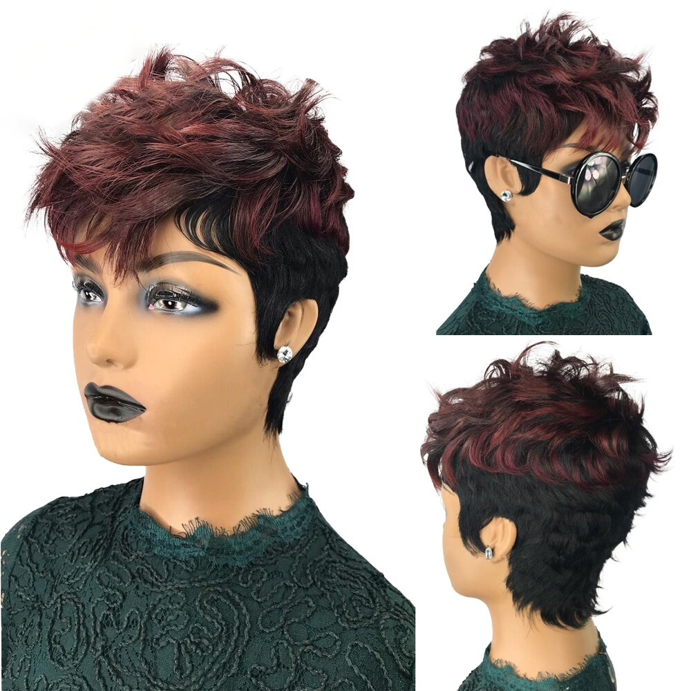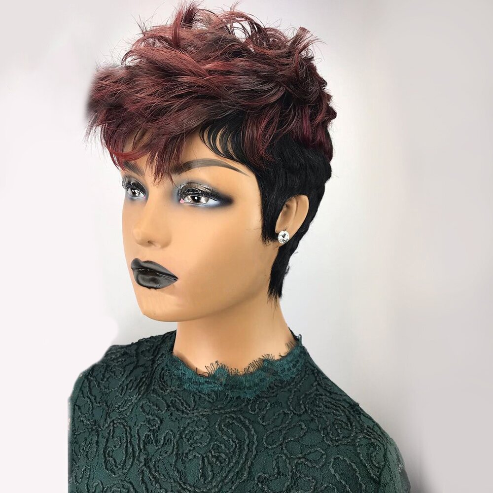 🔥Hot| Hot Sale🔥4*4 Lace Closure Glueless Virgin Hair Red Wine Short Wave Bob Pixie Cut Wig