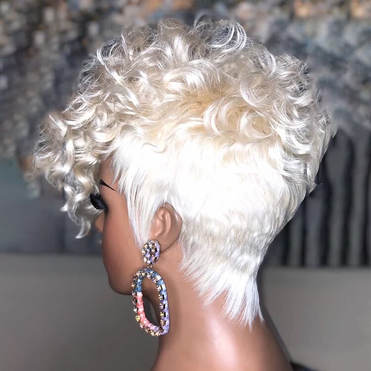 🔥Hot| New Fashion Glueless Blond Short Pixie Curly Lace Front Wigs Human Hair With Baby Hair
