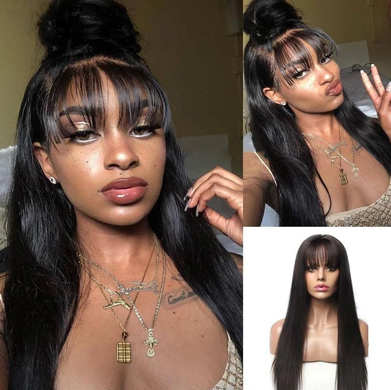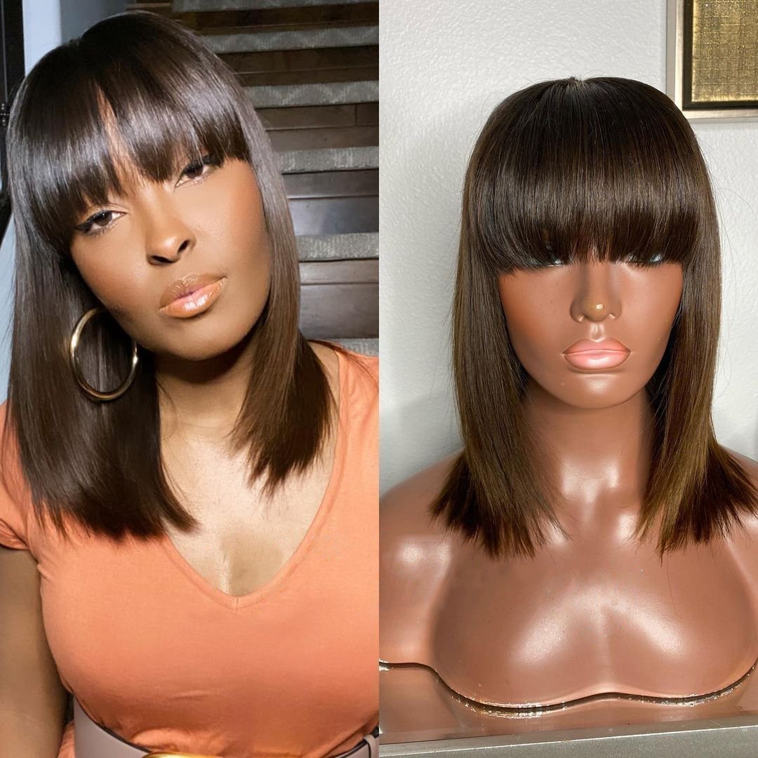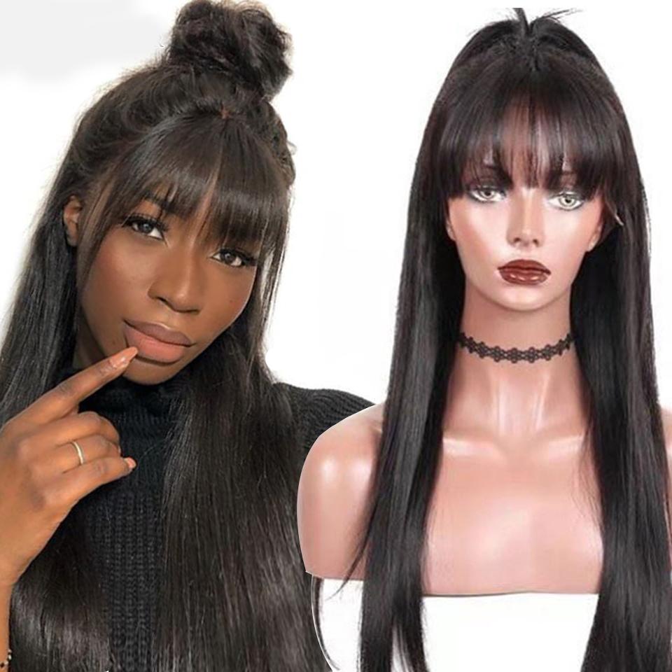 Glueless Wig With Elastic Belt|Straight Wigs with Bangs Human Hair for Black Women
