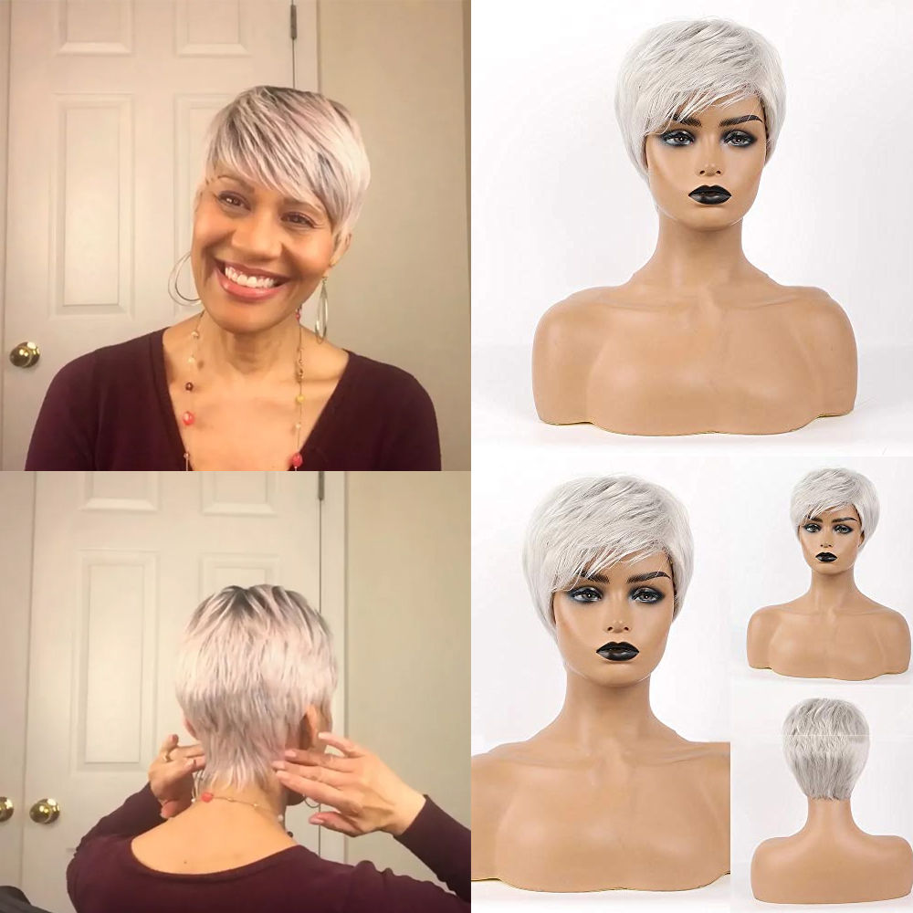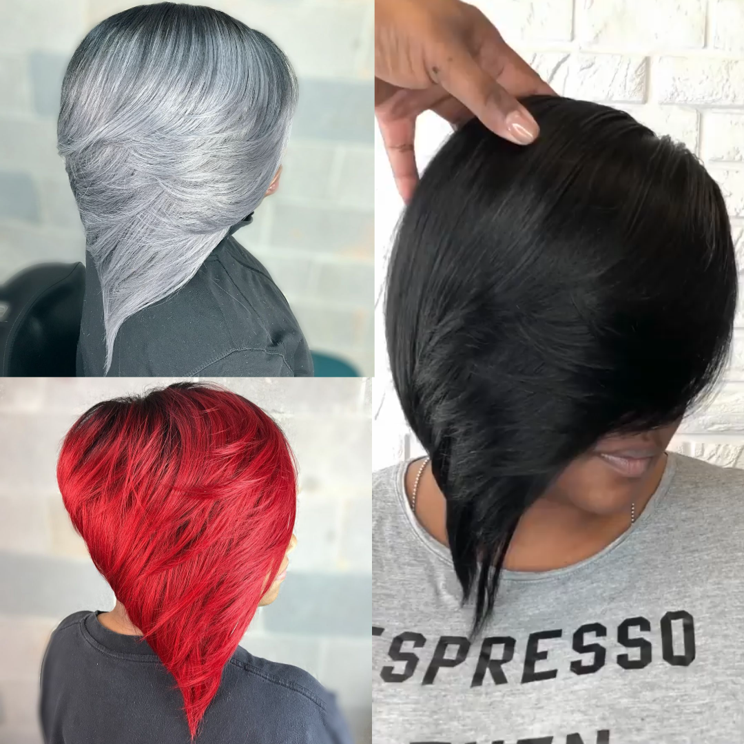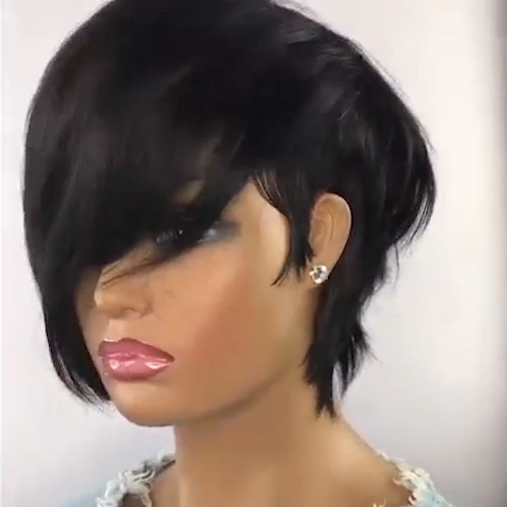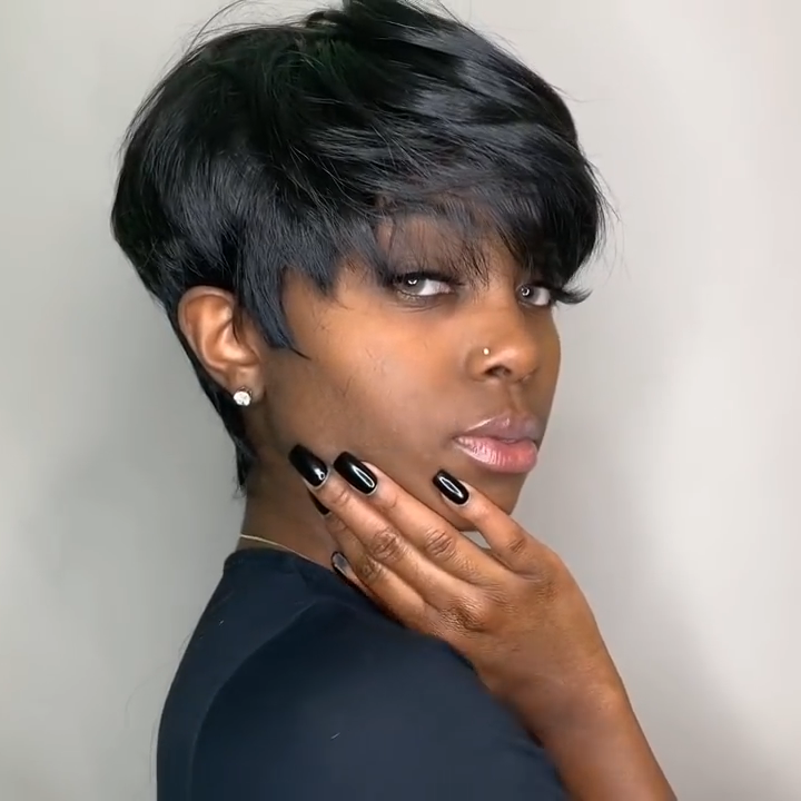 🔥Hot| New Remy Human Hair Short Straight Wigs Bob Pixie Cut Layered Haircut
