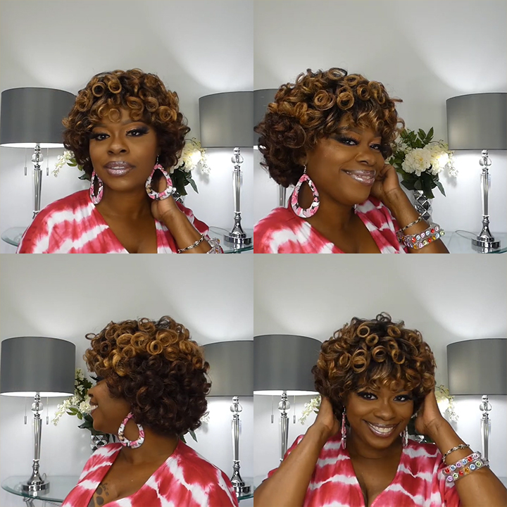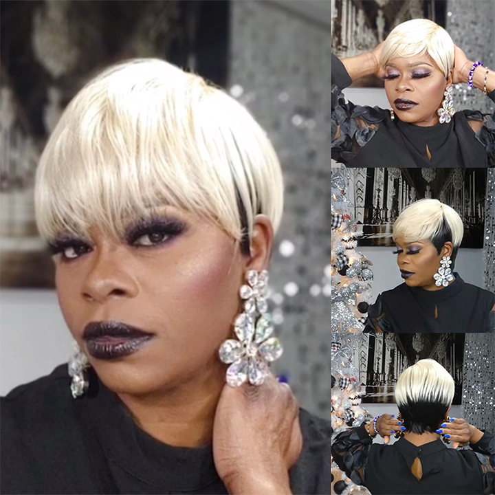 Glueless Wig With Elastic Belt|🔥4*4 Lace Closure Highlight Pixie Cut Wig Bangs Natural Short Haircuts
