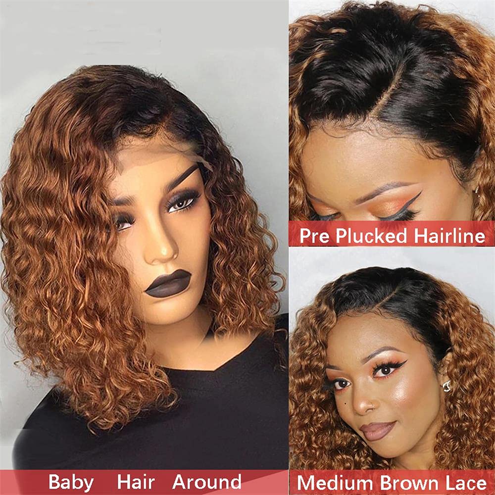 🔥Hot| Ombre Hd Transparent Lace Front Wig Bob Kinky Curly Wig Pre Plucked with Baby Hair