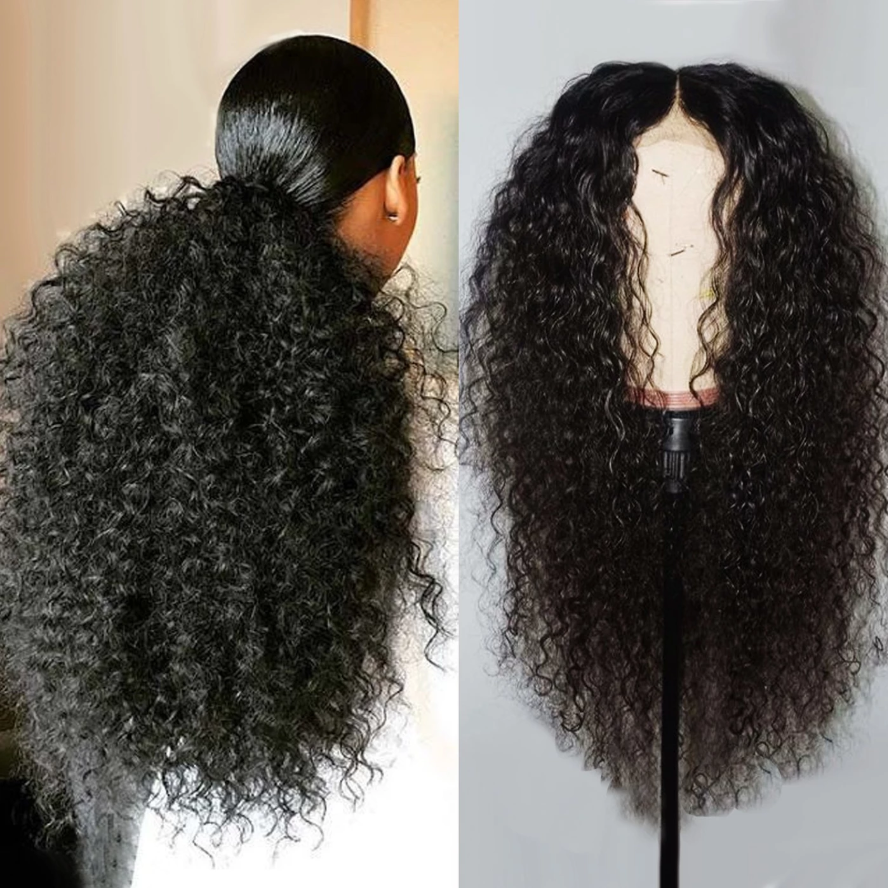 Glueless Wig With Elastic Belt|🎉Lace Frontal Human Hair Kinky Curly Wig Pre Plucked with Baby Hair