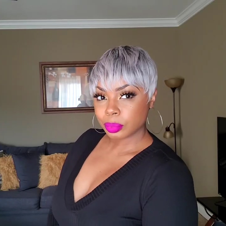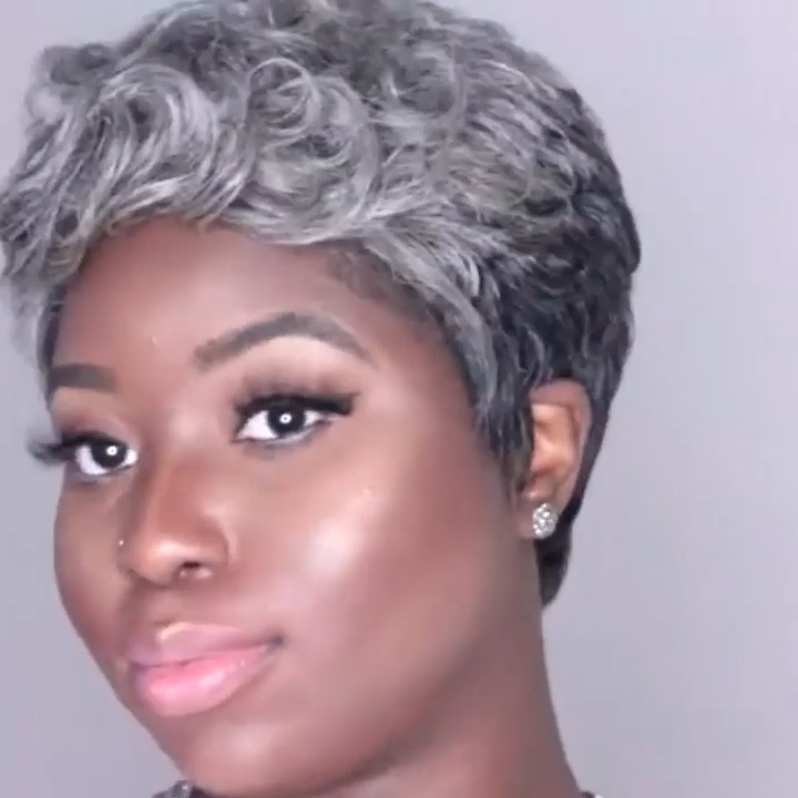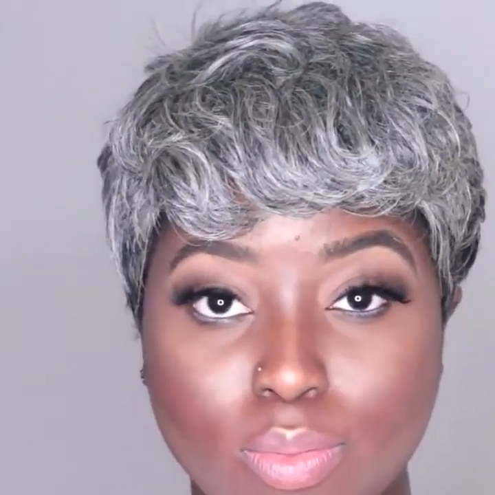 🔥Hot| Hot Sale🔥Glueless Natural Color Lace Bob Wigs Silver Short Wave Pixie Cut Wig