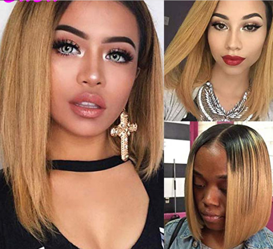 Glueless Wig With Elastic Belt|🔥13x6 Lace Front Ombre Short Bob Straight Wigs Pre Plucked with Baby Hair