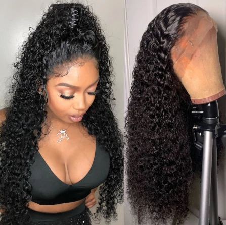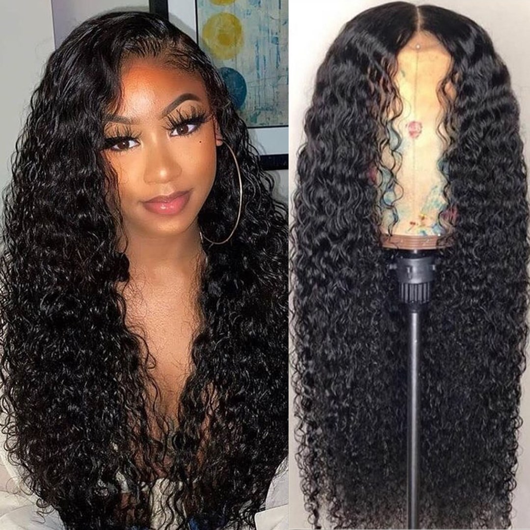 Glueless Wig With Elastic Belt|🔥Water Wave 4x4 Lace Front Wigs Human Hair Pre-plucked Curly Wig