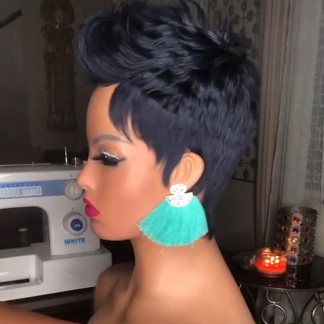 🔥Hot| Deep Blue Bob Boycut Short Hair Glueless Lace Front Pixie Cut Wigs with Bangs