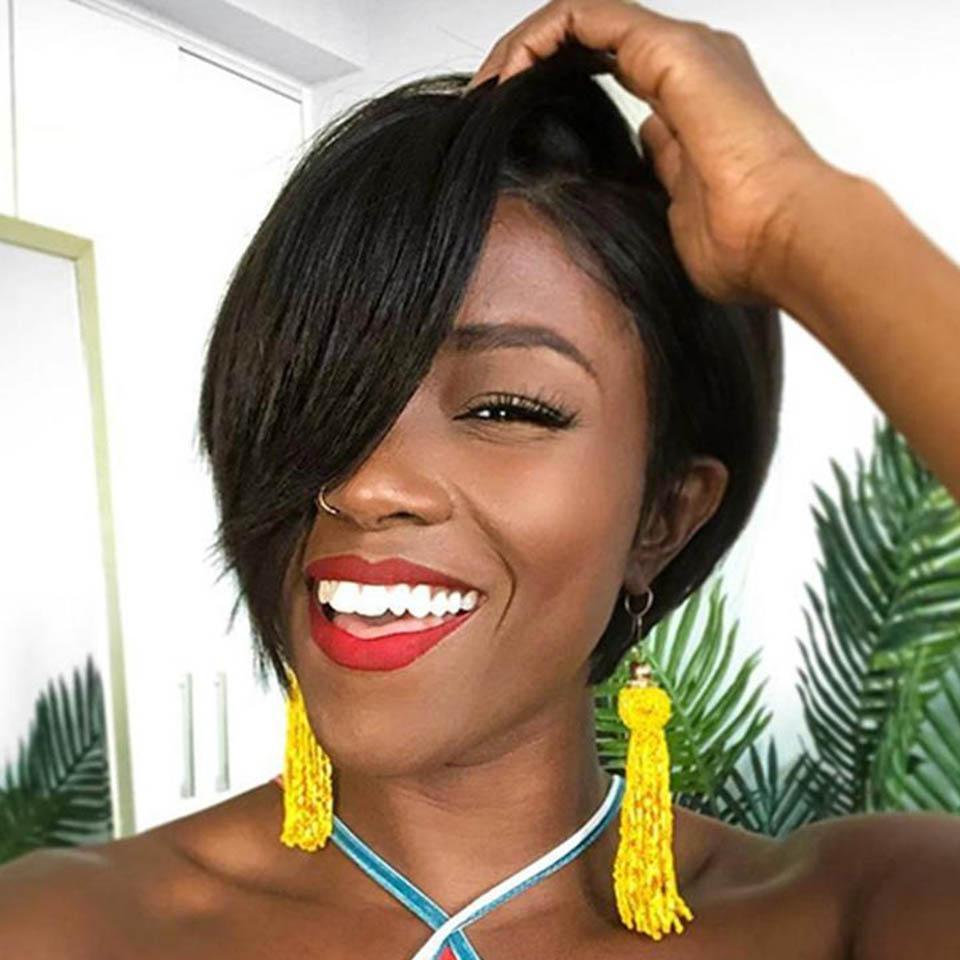 🔥Hot| Natural Glueless Lace Front Human Hair Wigs Short Bob Pixie Cut With Bangs For Black Women