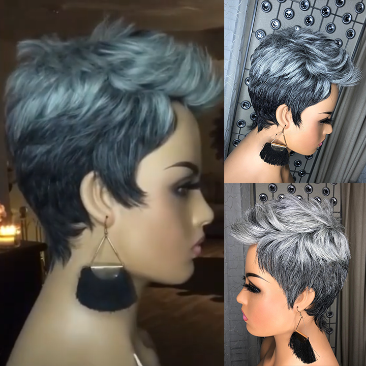 🔥Hot| Glueless Lace Frontal Short Ombre Sliver Wavy Pixie Cut Wig With Baby Hair