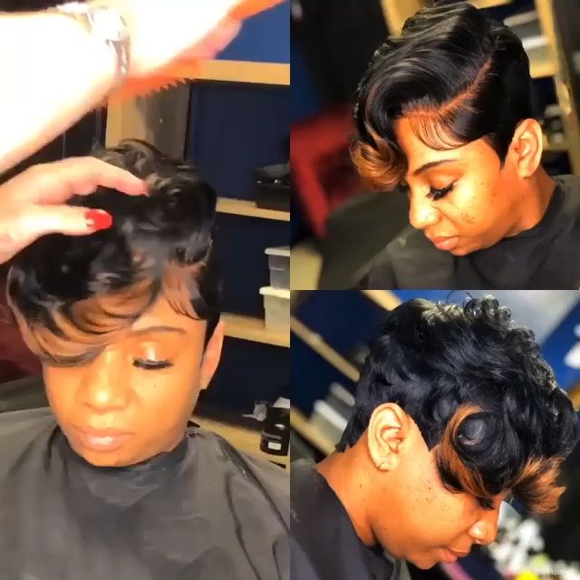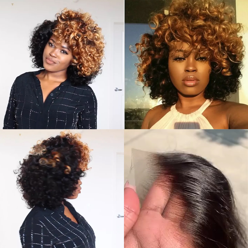 🔥Hot| Glueless Lace Front 🔥Black Mix Gold Short Wavy Bob Pixie Cut With Bangs For Black Women