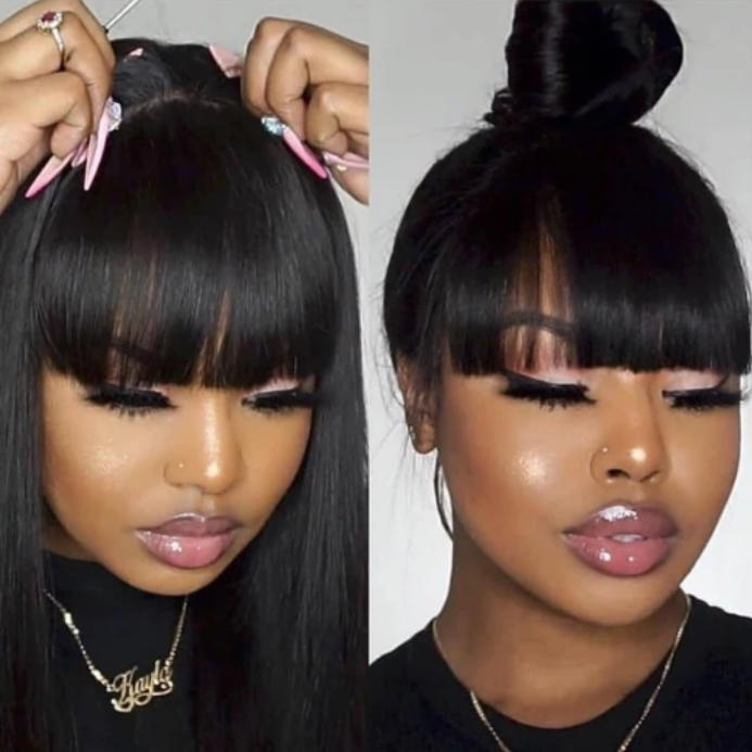 Glueless Wig With Elastic Belt|🔥Lace Wig Straight Pre Plucked Wig With Baby Hair Remy Wigs With Bangs