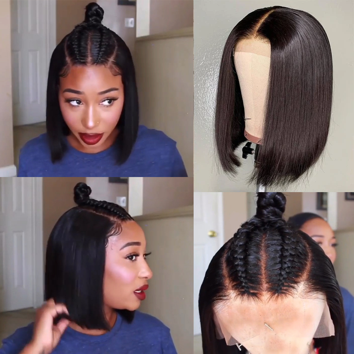 Glueless Wig With Elastic Belt|🔥Brazilian Human Hair Straight Hair 4*4 Lace Closure Bob Wigs