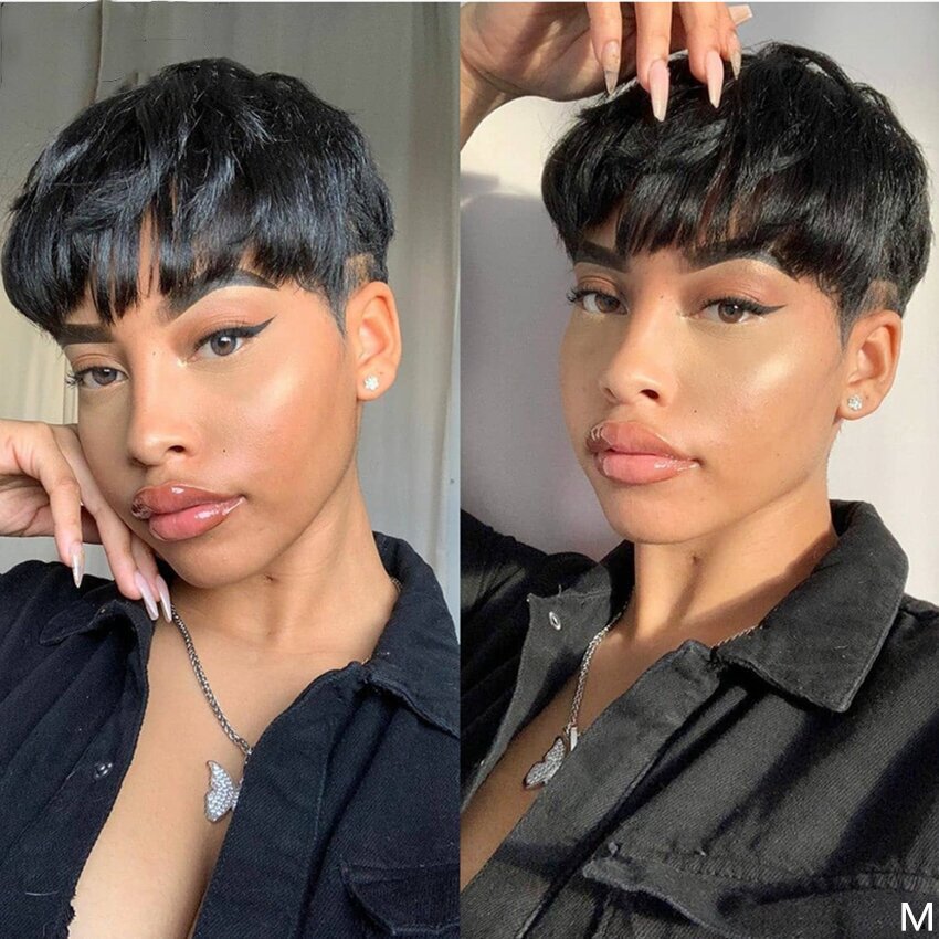 🔥Hot| Glueless Lace Short Hair Wig Pixie Cut Wig Bangs Natural Short Haircuts for Women