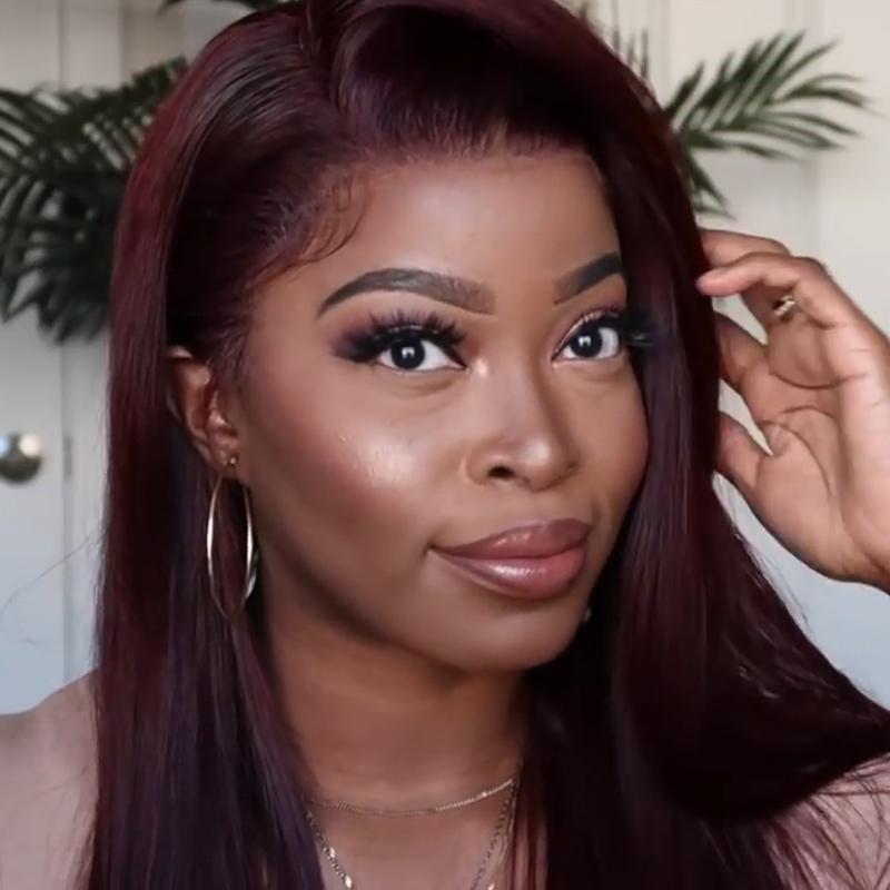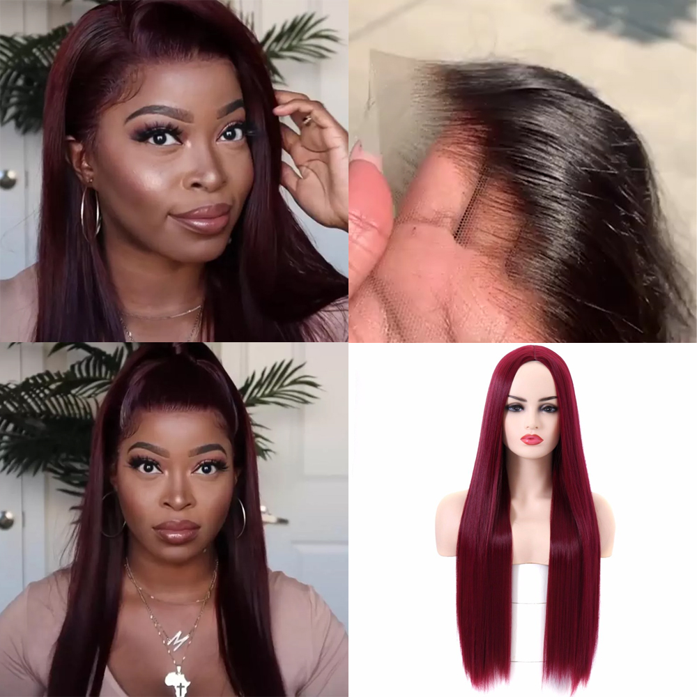 Glueless Wig With Elastic Belt|🔥4*4 Lace Closure Straight Long Wine Red Wig Pre Plucked with Baby Hair