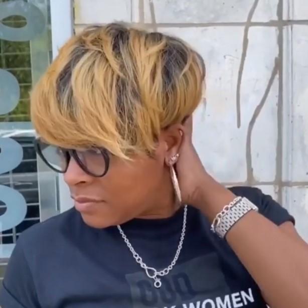🔥Hot| Glueless Wig With Elastic Belt Lace Front Blonde Ombre Pixie Cut Wigs With Bangs