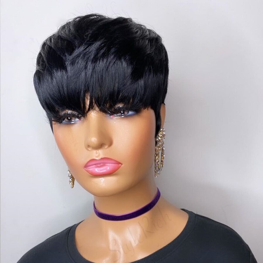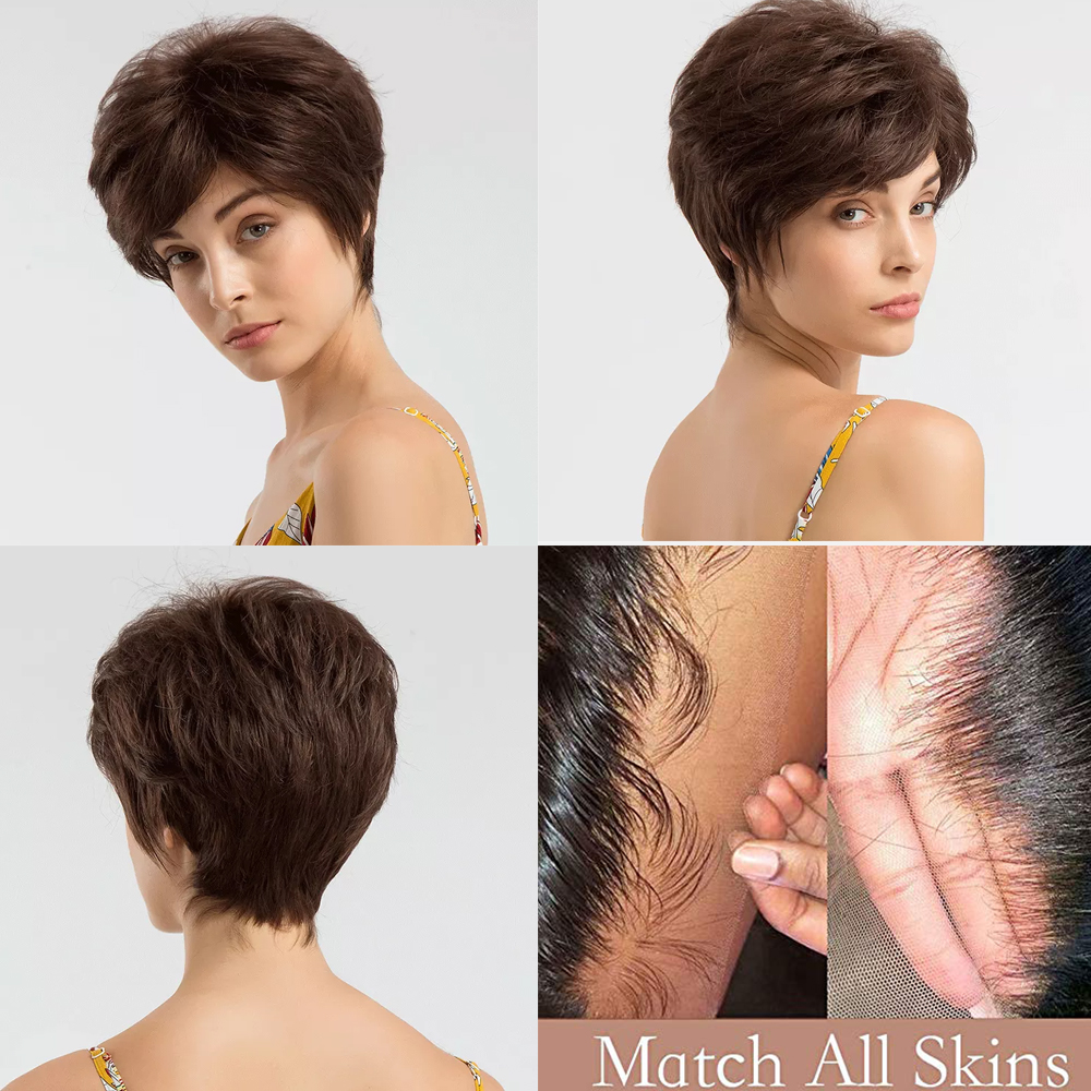 🔥Hot| Super Natural Short Pixie Cut Glueless Lace Wigs Human Hair Short Straight Wigs with Bangs