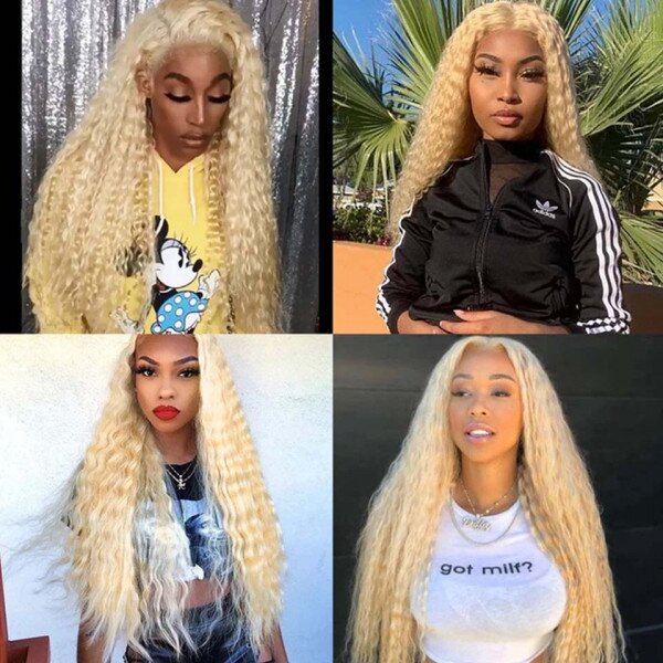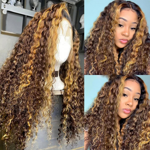 Glueless Wig With Elastic Belt|🔥Blonde Deep Wavy Curly Full Lace Wigs Pre-plucked With Baby Hair