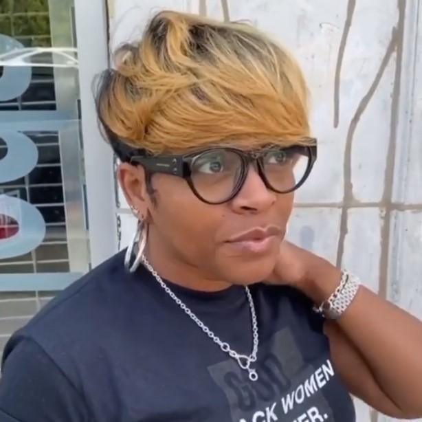 🔥Hot| Glueless Lace Frontal🔥Black Mix Gold Short Wavy Bob Pixie Cut With Bangs
