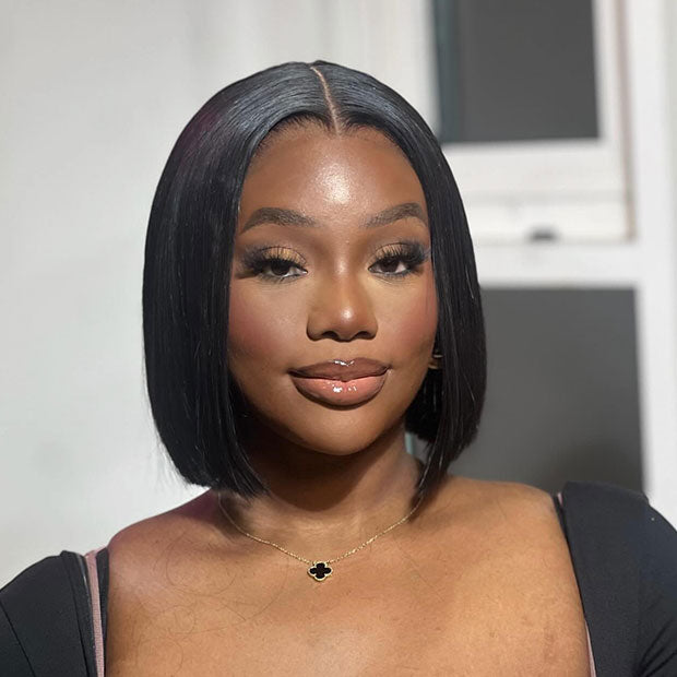Vshow Short Bob Straight Human Hair Wear Go Wigs With Bleached Knots Pre Cut 10x6 Lace Wigs For Women