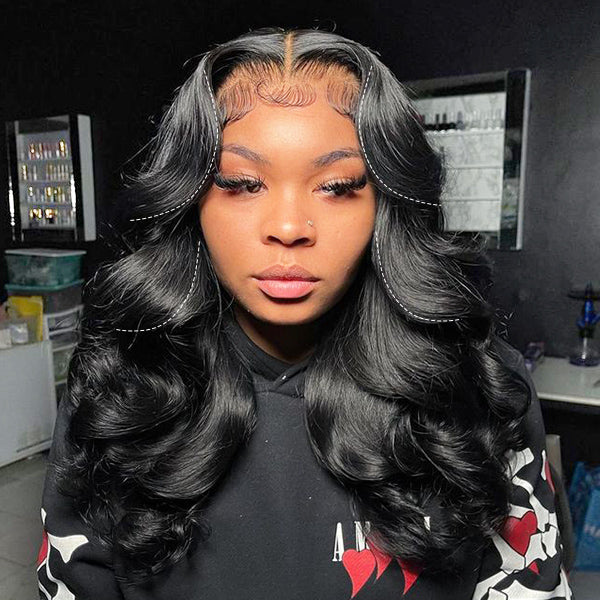 • Layered Cut Pre-bleached 7x5 Wear Go Wigs 180% Density Face-Framing Body Wave Human Hair Wigs